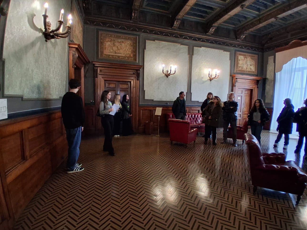 Tanti sono i ragazzi interessati a fare questa esperienza e noi abbiamo dato da una parte la priorità a chi lo voleva fare per l’ennesima volta perché ormai era diventato un veterano e ci aveva proprio piacere a rivivere l’esperienza, sia cercato di coinvolgere gli studenti delle classi inferiori, quindi anche delle classi terze, in modo particolare del liceo linguistico, perché spesso capita che ci siano dei visitatori stranieri e quindi si debba improvvisare,una visita anche in lingua inglese. Poi ecc cerchiamo di incoraggiare i ragazzi, di tranquillizzarli perché c’è sempre molta apprensione all’idea di dover affrontare da soli un gruppo di 20 o 25 adulti, che a volte sono anche molto esigenti perché non si rendono conto di non avere di fronte una guida professionista, non capiscono che hanno di fronte dei ragazzi, degli studenti. Cerchiamo anche di aiutarli nella rielaborazione del materiale e nell’ elaborazione delle dispense che deve essere esaustiva ma deve essere anche semplice, al loro livello, alla loro portata. Vanno aiutati anche a gestire il tempo, a rientrare dentro il range che deve essere di 40 minuti, non di più, di selezionare le cose che sono più importanti da quelle che possono essere invece secondarie.